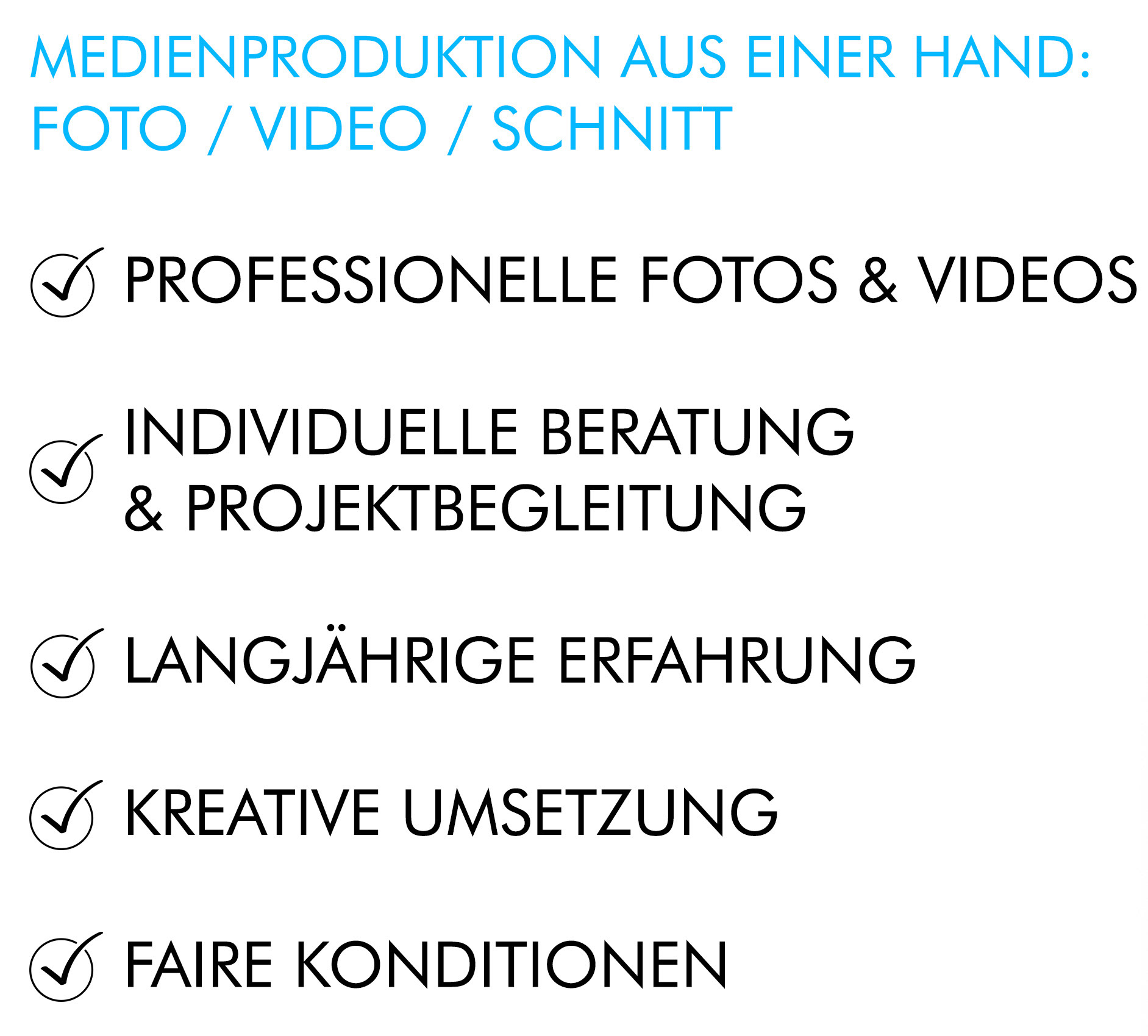 Fotos und Videos sind heute entscheidend, um von Kunden wahrgenommen zu werden. Ich unterstütze Sie dabei, maßgeschneiderten Mediencontent zu entwickeln, der Ihr Unternehmen stärkt und es noch attraktiver macht.